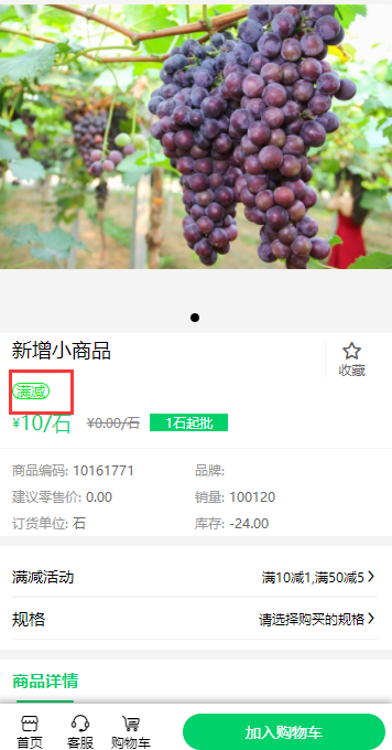 滿減活動(dòng)可以指定商品參與,也可以設(shè)置指定商品不參與,參與商品在訂貨端顯示滿減標(biāo)識(shí)。