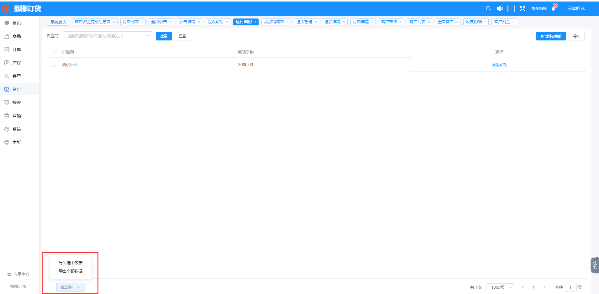 路徑:資金-賬戶管理-應(yīng)收期初/應(yīng)付期初-導(dǎo)出