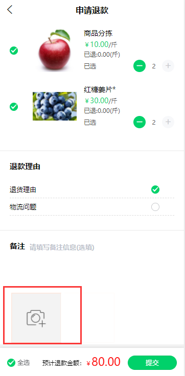 用戶在訂貨端申請退貨時(shí)新增圖片上傳功能: