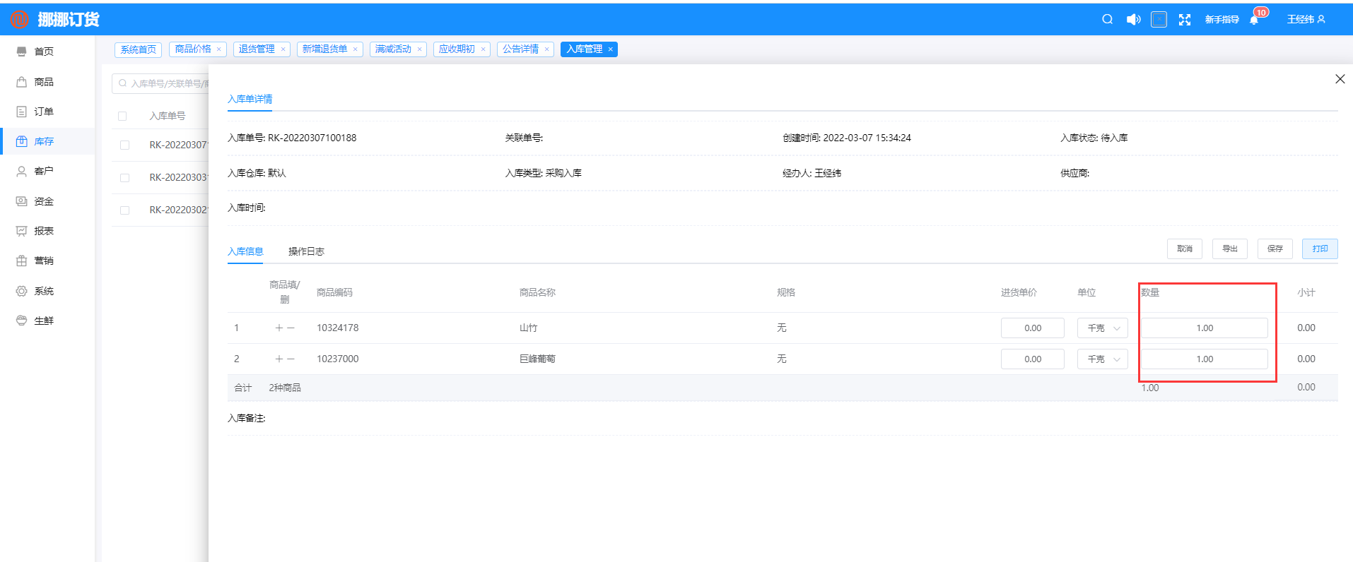 路徑:庫存-入庫管理