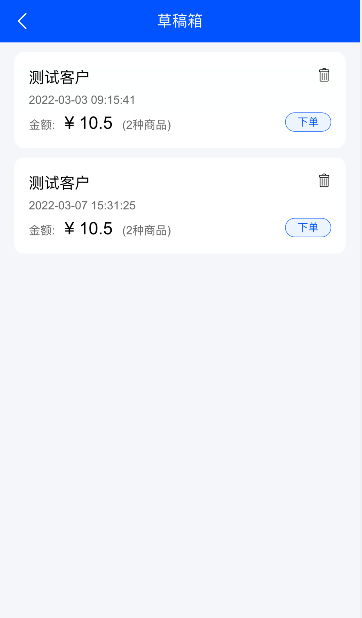 手機(jī)管理端添加銷售單時(shí)可把銷售單保存到草稿箱內(nèi),便于下次繼續(xù)下單;